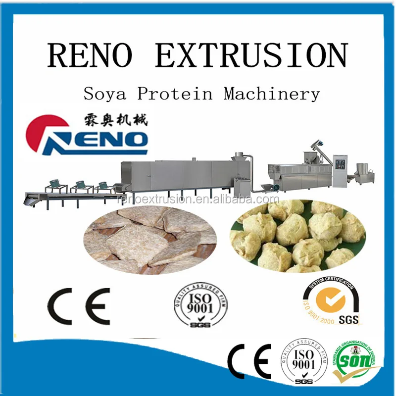 AutomaticTextured soya protein food production line Textured soya protein food machinery Textured soya protein food extruder Textured soya protein food processing line is suitable for producingTextured soya protein food in all shapes. It is widely used with a high temperature soybean flakes and as basic raw material, with a dry twin-screw extrusion machine, through strong squeeze instantaneous puffing, shaped different shapes soya food material ,After drying and surface seasoning coating ,its shaped all kinds of soya protein food finally .