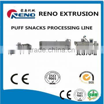 india puff Snacks extruder adopts corn, rice, wheat, oat, barley etc as ingredients to make puffs snack. Through friction of screw and barrel, the grains are cooked in the extruder Barrel. puff sancks extruder Forming is at the die face cutter. The product shape is determined by a combination of the die aperture, efficient snack food extruderincluding ball, tube, stick, ring, fruit loop, star, wheel and flower etc.