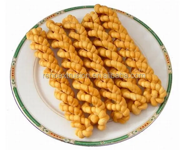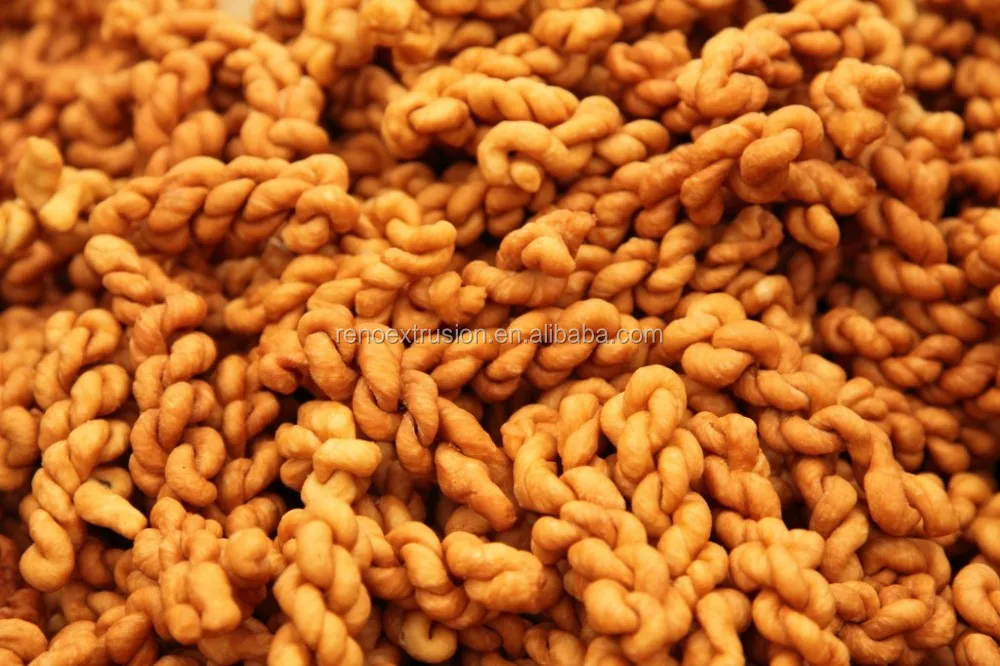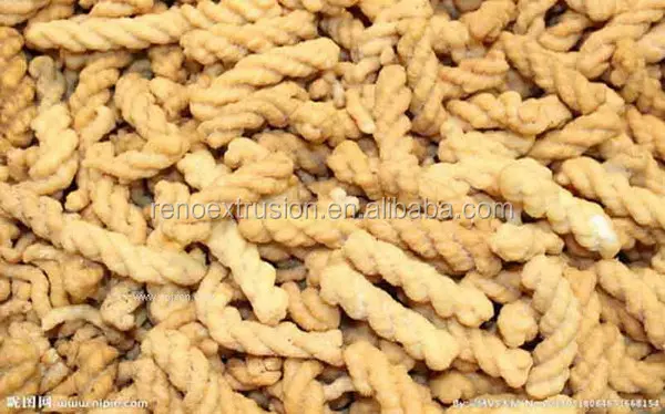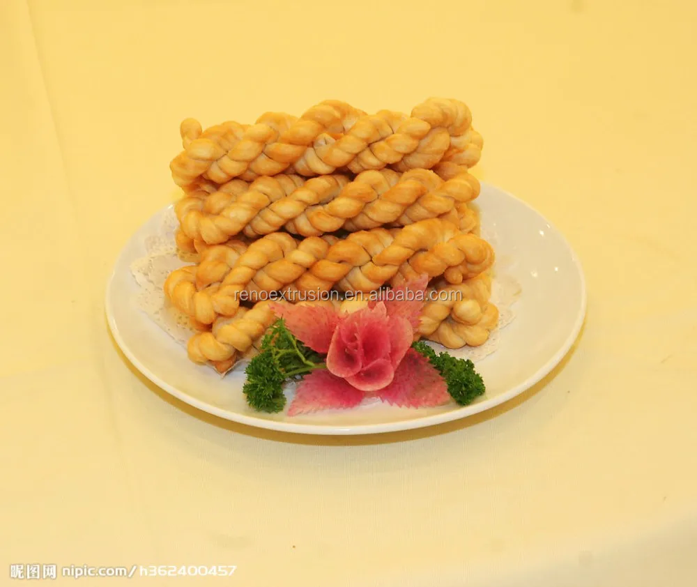 Automatic fry dough twisty machine twisty food production line twisty dough frying line twisty food extruder is suitable for producing dough twisty food in all shapes and length. It is widely used to produce the wheat dough twisty food .