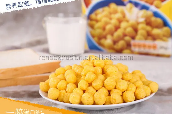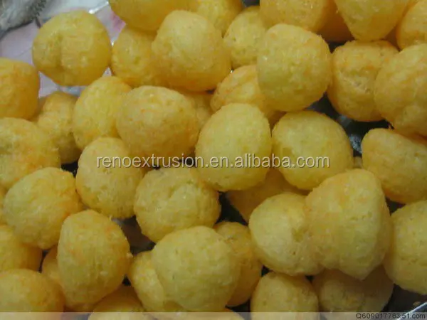 cheese ball machinery Production Line: Expanded snacks food production line, use the powdered corn / rice and other cereals as the basic raw material, pressed by the twin-screw extruder , puffed and expanded in short time, cut into different shapes snacks food, thereby After drying, spraying flavoring materials onto the surface to enhance the taste of final snacks, finally, packaging .this is one set of automatic production lines for Expanded snacks food.