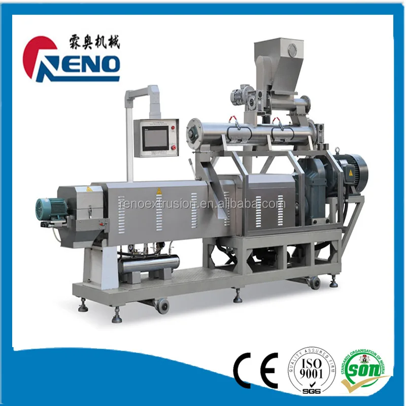 Crushed raw material particles - adjust humidity / mixing - extruding - drying - seasoning (cooling) – Packaging