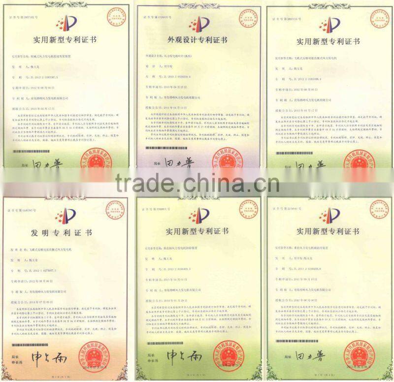 Our BF-H series wind power generating set utilize a new aerofoil vertical axis wind wheel and magnetic suspention structure,the wind energy coefficient is very high, the start-up wind speed is very low, the anti-wind capability is high,the weight of generator is very light, operation is stable, have no noise,with careful anti-corrosion treatment and good sealing, maintenace free and long service life.