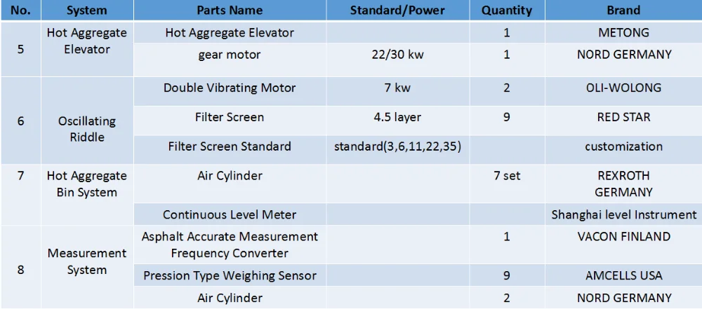 B. Intelligent: Imported accessories (asphalt pump--Danish ROTAN, burner—Italian Riello, hydraulic pump –Germany Rexroth, temperature control system—Omron, computer control components—Siemens. The standard type also uses imported accessories.