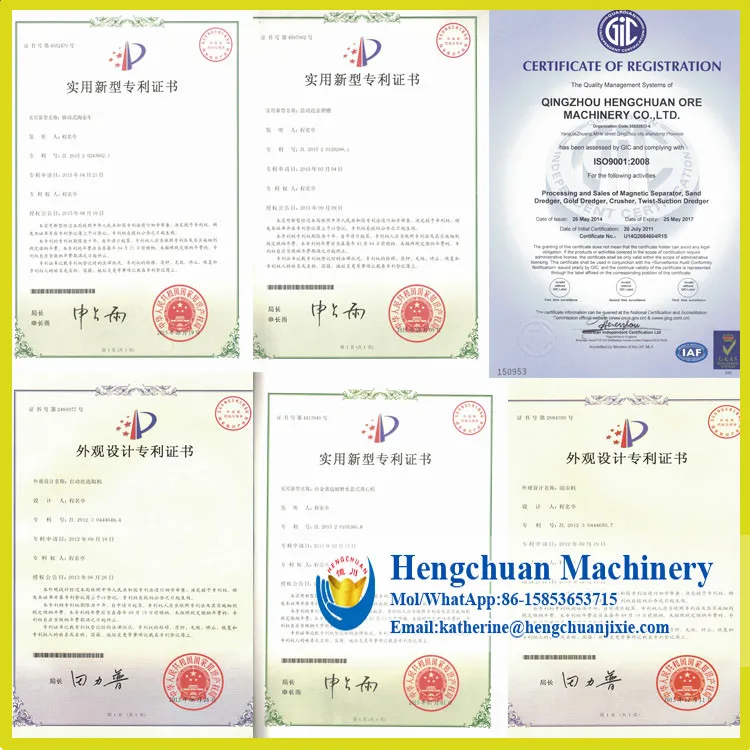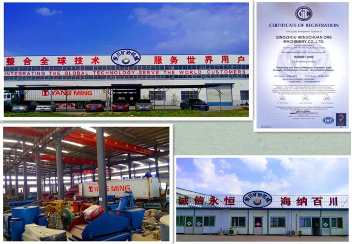 Qingzhou Hengchuan Ore Machinery Co.,ltd,was established in 2002,a leading ore machinery manufacturer in China,covering an area of 20000 square meters,have 6 engineers,20 technicians and 100 workers. Our main products:Gold Mining Machinery,Magnetic separators and all kinds of mining dredger etc.Our main market is domestic,Africa and Southeast Asia,such as Cameroon,Ghana,Mali,Zimbabwe,Malaysia,Indonesia and Philippines etc. Cutter suction dredger is widely used in dredging engineering.The rotating cutting head in the front of the suction pipe can stir slurry,then dredging pump suck the slurry through the suction pipe,then through the discharge pipe to the mud yards.Dredging, transportation and discharge is a whole series work.So the cutter suction dredger is an efficient and economic dredger.We start to manufacture the cutter suction dredger from 2005,gradually accumulated rich experience in this field. Development History: A).Established Magnet Research Institute in 2004,successfully developed the high gradient magnetic separator to 12000-22000GS. B).Cooperated with Shandong Gold Group and doubled the sales scale. C).Developed STL-120 gold centrifugal concentrator in 2008. D).Mature dredger products in 2009. E).Developed successfylly knelson smiliar type automatic discharge type gold centrifual concentrtor and produced them in large quantity for sellling. F).Established Shandong Hengchuan International Trade Co.,Ltd in 2015. Enterprise Spirit -eternal integrity Enterprise Purpose-to consistently exceed customers' expectations Core Values-innovation and leading the future Service Concept- to create value for customers Development Concept - Quality is life; innovation is the driving force Corporate Vision- the world leading supplier of magnetic separation equipment