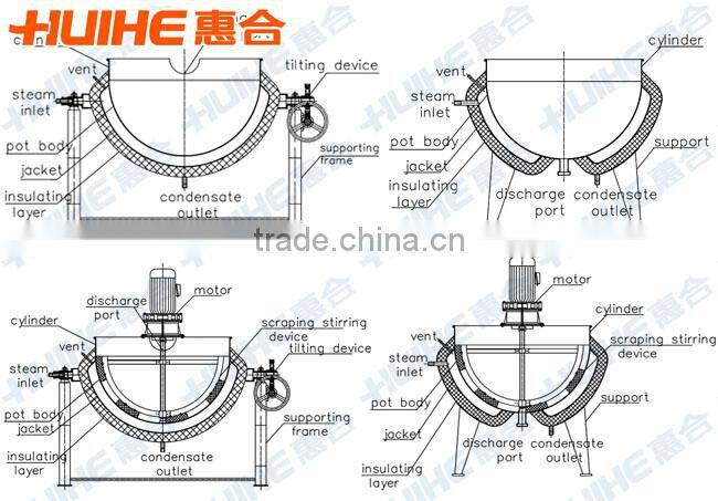The equipments conform to the sanitary standards, thus effectively guarantee people's health. Huihe Company not only has a professional oversea sales team , but also has department of networks, sales Support and technology research and development,etc .We can supply turn-key project for design and manufacture of a whole production line, for example milk production line, juice production line ,tea production line ,etc. Our core value is “service for small and medium food enterprises, and benefit of the public”, the products has been send to all over the world for 9 years . We are deeply trusted by the users in the food and beverage industry. We are famous in the food machine field for jacketed kettle, sterilization equipment, reaction tank and fermentation tank ,etc. Since founded in 2005 , we service customers with good pre-sales support and after-sale service . We purpose is "guaranteed quality, complete variety , competitive price , timely delivery" .We insist our vision “Honest, pragmatic and win-win ” to provide best quality and service.
