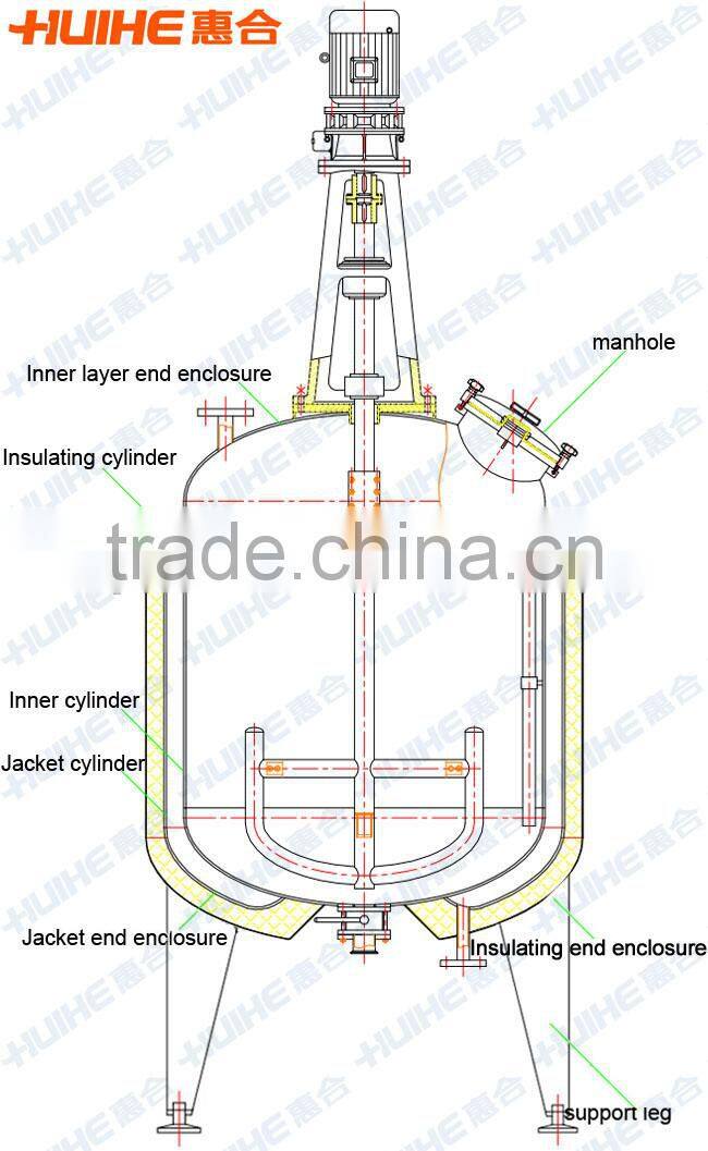 3. The jacket working pressure≤ 0.09Mpa, also can be made according to customers’ requirements.