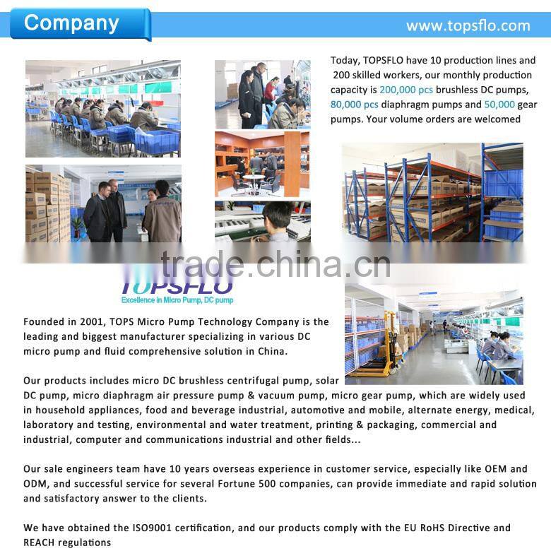 TOPSFLO micro diaphragm pumps and compressors are based on a simple principal, the circular power from the motor is converted into oscillating movement by an eccentric, which moves up and down its central point, this motion is then transferred