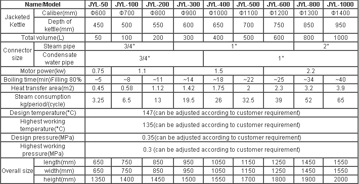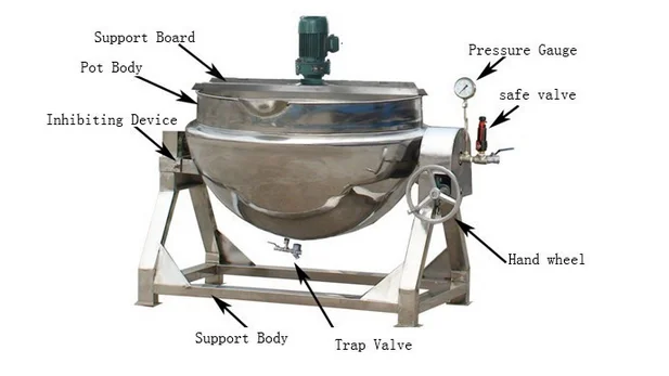 Steam Heated Jacket kettle (stainless Jacket kettle), widely used in the producing of candy, jam,cake, drink, Honey Line, can, ect, also can used in the big restaurant or dinning room for making soup, cooking food, fricasseeing, making congees.