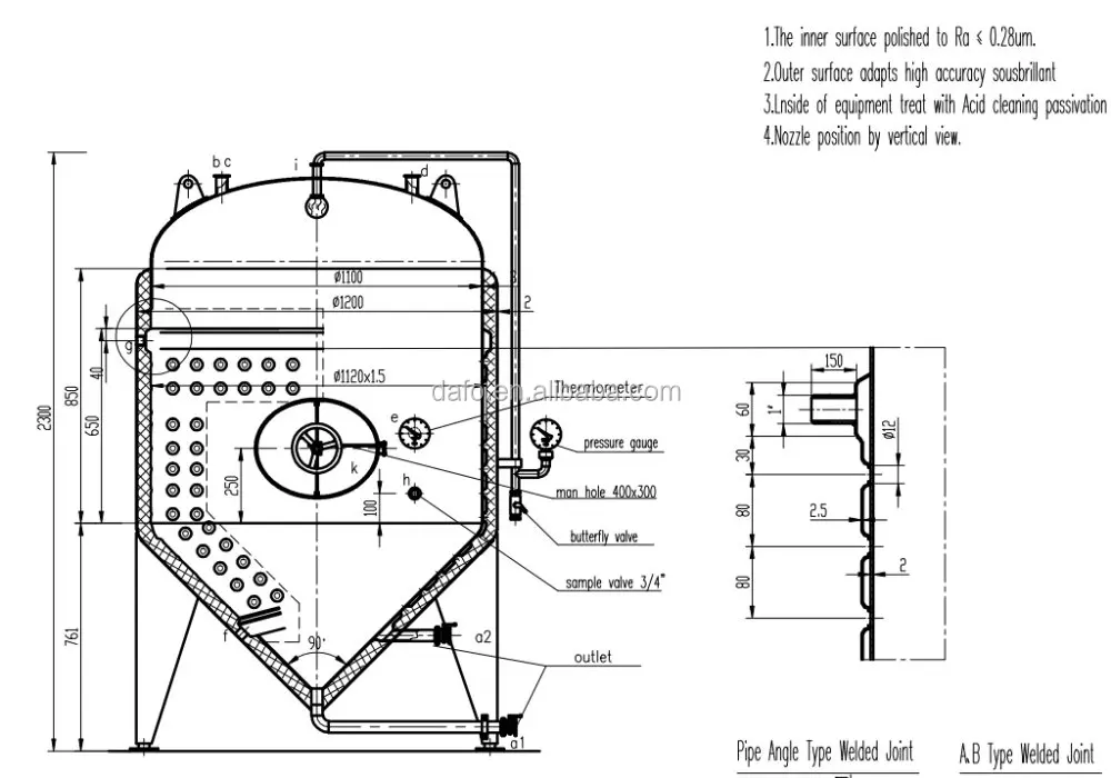 Interior and exterior finish bright polish to 0.6~0.8, hygiene surface