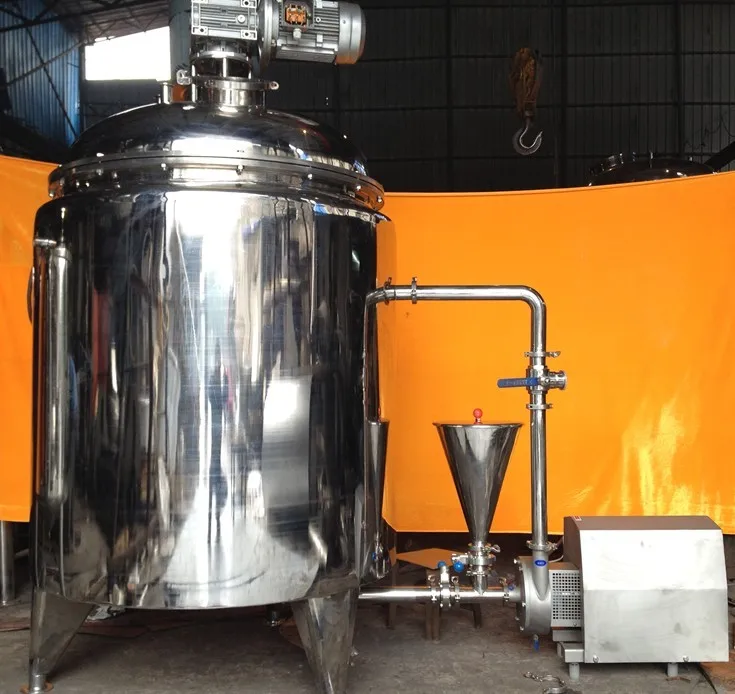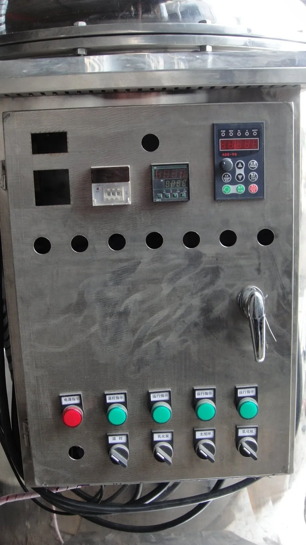 This emulsifying tank is with functions of Mixing, Homogenizing, Dispersion, Heating, Cooling, Circulating, Feeding materials, etc..