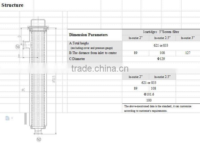 • Filter housing adopts quick connection, easy to handle, economical and practical.