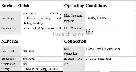 In addition to the introduction of new manufacturing methods and the purchase of advanced welding equipment, we are also dedicated to researching the improvement of quality, function and usage life of our products. We have been meeting global demand of high quality &technical support to our clients.Our products cover from all kinds sanitary filter,cartridge filter, bag filter ,mixing tank ,storage tank etc,which have been applied into fields of pharmacy, food & beverage, biological engineering, lab solution laboratories, mineral water, liquor and cosmetics.
