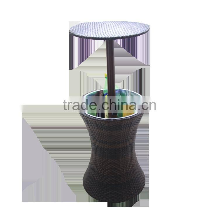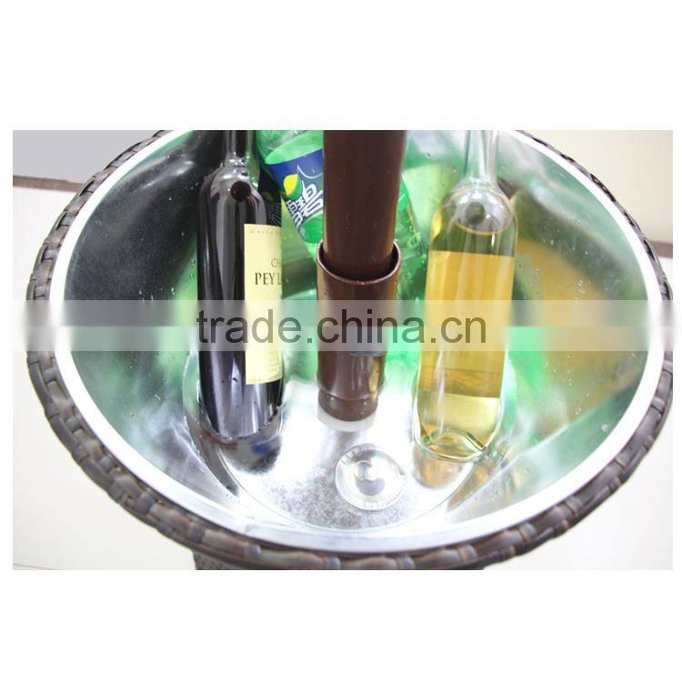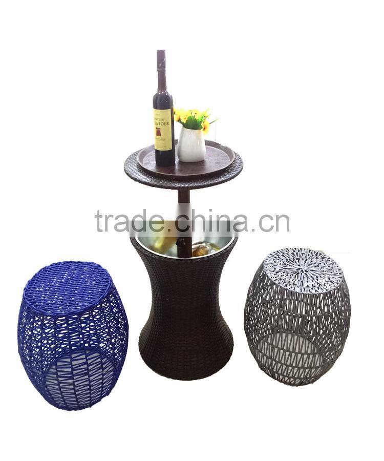 1.The material of our cooler with table is PE rattan and iron bucket