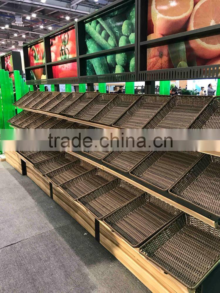 Handwoven food-safe accept OEM large size basket supermarket display shelves for vegetable