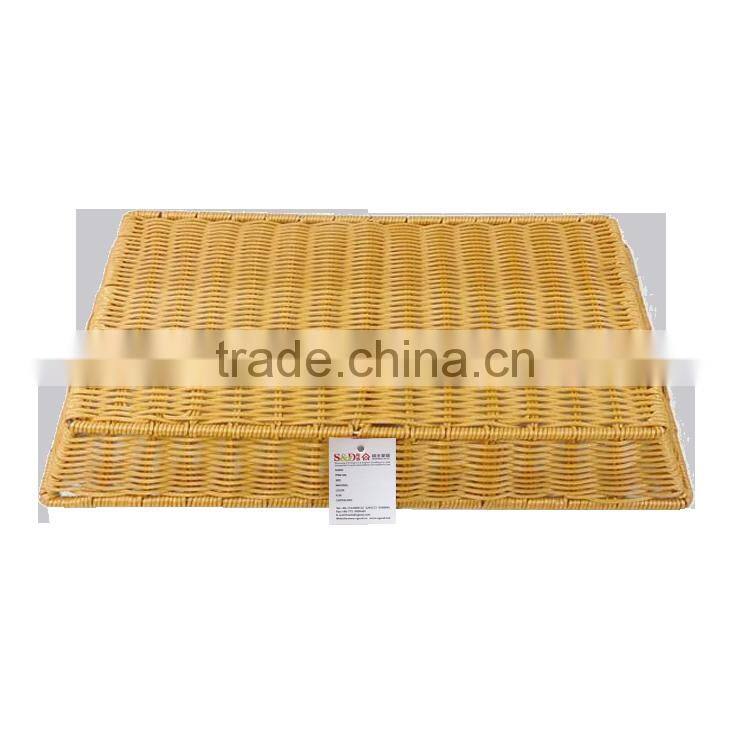 Hot Sale Wholesale Cheap Rectangle Woven Rattan Plastic Food Tray