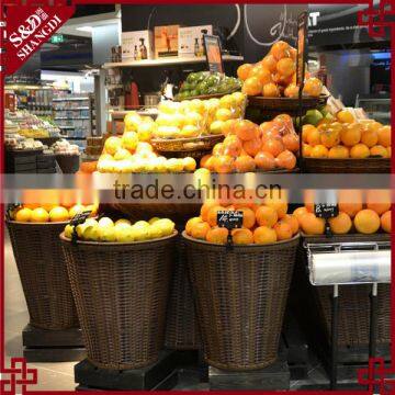Wholesales supermarket PE rattan plastic display stand for fruit vegetable