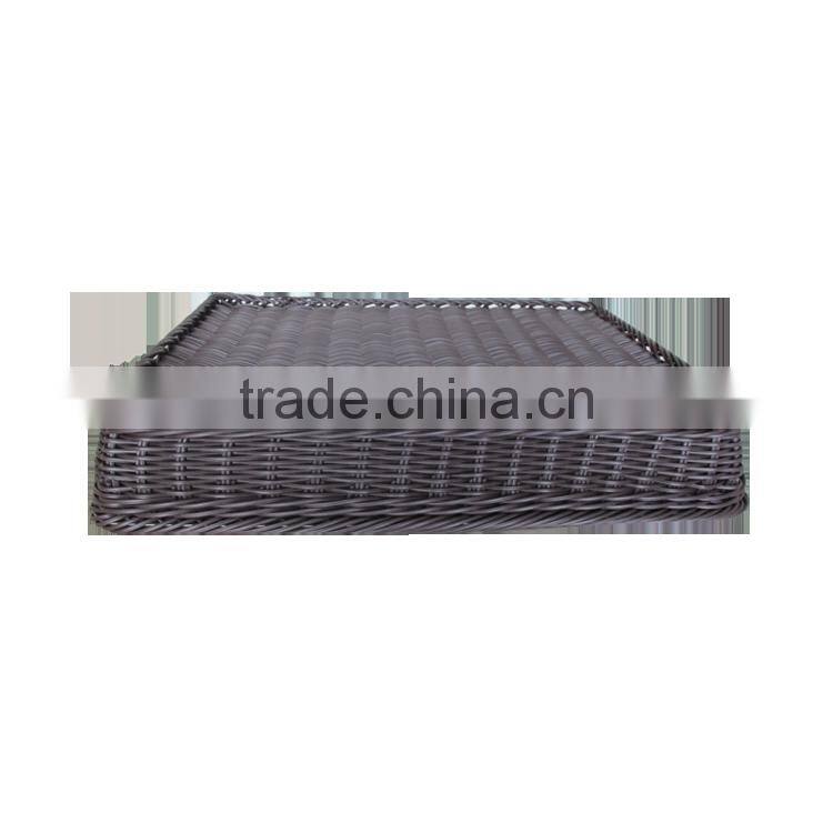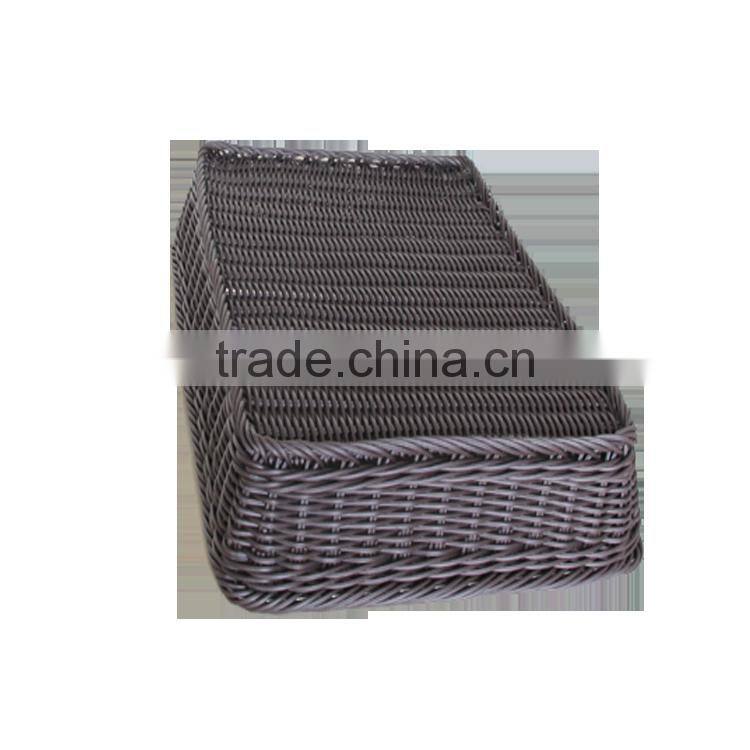 These plastic vegetable storage basket are new design display equipment for supermarket to display the goods like fruit ,vegetable,bread,seafood and so on.The possibilities are as endless as your imagination! these baskets are hand-woven out of solid cord polypropylene which is resistant to heat,cold,mold, mildew, and bacteria. These storage baskets are safe in dishwashers.They are 100% nontoxic, BPA free, and are suitable for direct food use.They are great for food and produce presentations.if you like ,kindly contact me !