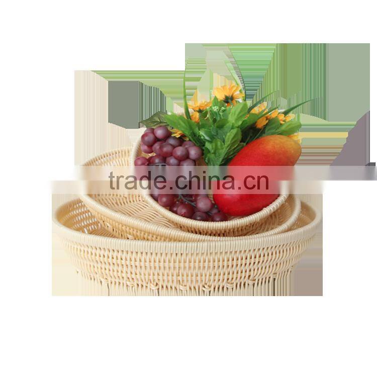 These plastic fruit plate are new design display equipment for supermarket to display the goods like fruit ,vegetable,bread,seafood and so on.The possibilities are as endless as your imagination! these baskets are hand-woven out of solid cord polypropylene which is resistant to heat,cold,mold, mildew, and bacteria. These storage baskets are safe in dishwashers.They are 100% nontoxic, BPA free, and are suitable for direct food use.They are great for food and produce presentations.if you like ,kindly contact me !