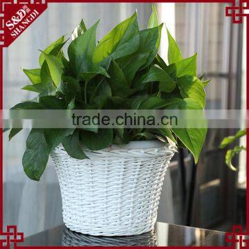 S&D Rattan small white round plastic flower pots light ceramic flower pot yard decoration