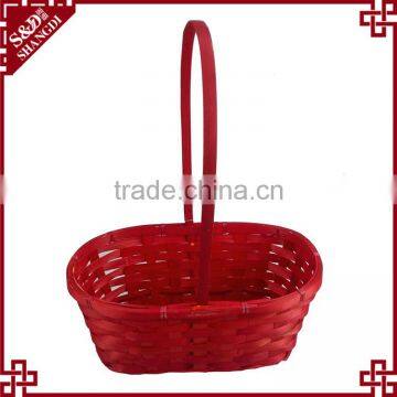 Cheap wholesale decor or gift item red wood handcraft christmas basket