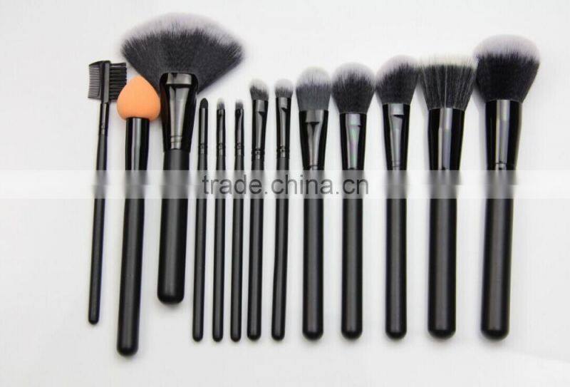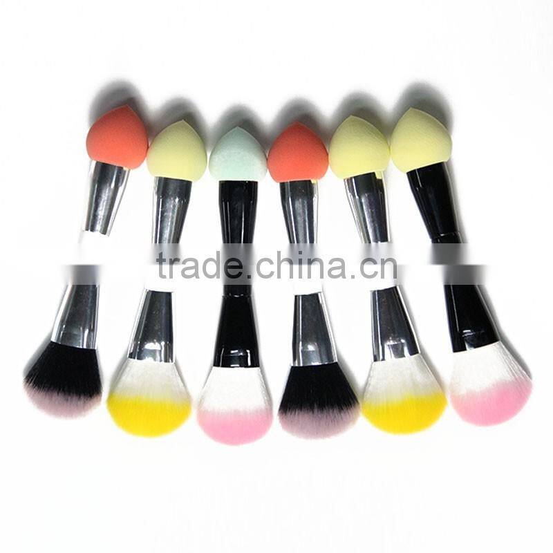 Doule sided cosmetic brush. One side is latex-free sponge for wet powder, the other side is Synthetic hair for dry powder.