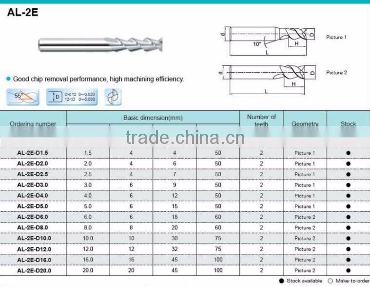 2.Sharp cutting edge and large helical angle design effectively prevent built-up edge.