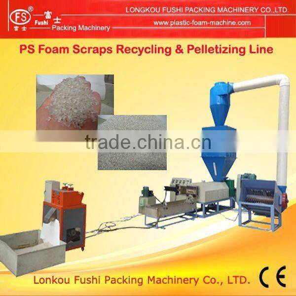 This line is the whole production line, which can form lunch box from raw material. The material is recycled. The work flow is as follows: raw material---(PS foam sheet extrusion line)---foam sheet---(lunch box forming machine and cutting machine)---lunch box---(plastic recycle machine)---plastic granulars( this part can be used as raw material)----foam sheet.