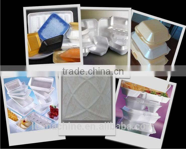 This line is the whole production line, which can form lunch box from raw material. The material is recycled. The work flow is as follows: raw material---(PS foam sheet extrusion line)---foam sheet---(lunch box forming machine and cutting machine)---lunch box---(plastic recycle machine)---plastic granulars( this part can be used as raw material)----foam sheet.