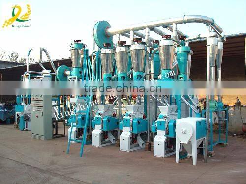 This production line adopts two-layer steel frame structure with continuous operation. The cleaning section adopts two sieving, two scourer, one destoner, one washing, two magnetic separating and etc technologies. All the elevators adopt bucket elevators greatly increase the production efficiency; meanwhile, decrease the power consumption extending the lifetime of the equipment. Milling section adopts milling bran and core respectively, and the following milling equipped with flour brusher which is a new technology. This production line could produce two kind of flour which is adjustable according to requirement.