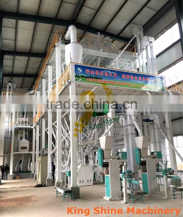 This production line adopts two-layer steel frame structure with continuous operation. The cleaning section adopts two sieving, two scourer, one destoner, one washing, two magnetic separating and etc technologies. All the elevators adopt bucket elevators greatly increase the production efficiency; meanwhile, decrease the power consumption extending the lifetime of the equipment. Milling section adopts milling bran and core respectively, and the following milling equipped with flour brusher which is a new technology. This production line could produce two kind of flour which is adjustable according to requirement.