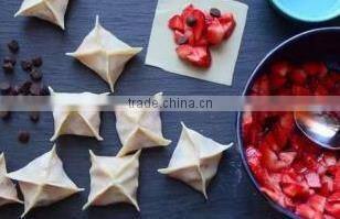 The biggest advantage of dumpling making machine is in the production of dumplings, the dough thickness and the size of the dumpling stuffing quantity can be adjusted, and produced the shape of the dumpling is very beautiful.