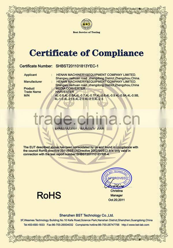 1. The mini harvester has the characteristics of simple& proper structure operation and repairing, small volume, light weight, low energy consumption, stable performance and strong applicability.
