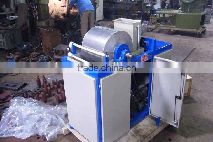 Drum machine built with open magnetic system, as to the mine quickly when the sub-elected magnetic minerals, magnetic minerals in the tank was in the dark magnetic suction surface, get rid of sludge by magnetic stirring and finally with the drum heads With flush discharged outside the rotating machine.