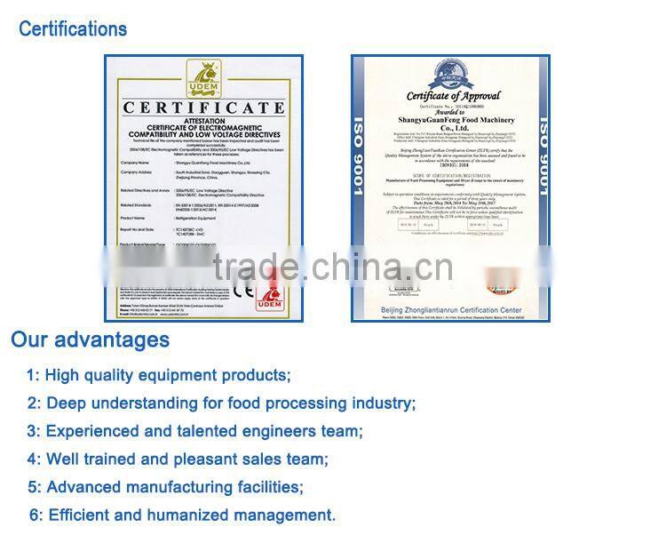 The GP-I model pre-treatment production line for quick-frozen vegetable mainly consists of high pressure cleaner, sorting conveyor, bubble cleaner, spiral blancher, normal temperature cooler, ice water pre-cooler and virbrating draining machine so as to realize automatic pre-treatment process such as cleaning, sorting, blanching, cooling, pre-cooling and filtering of vegetables.