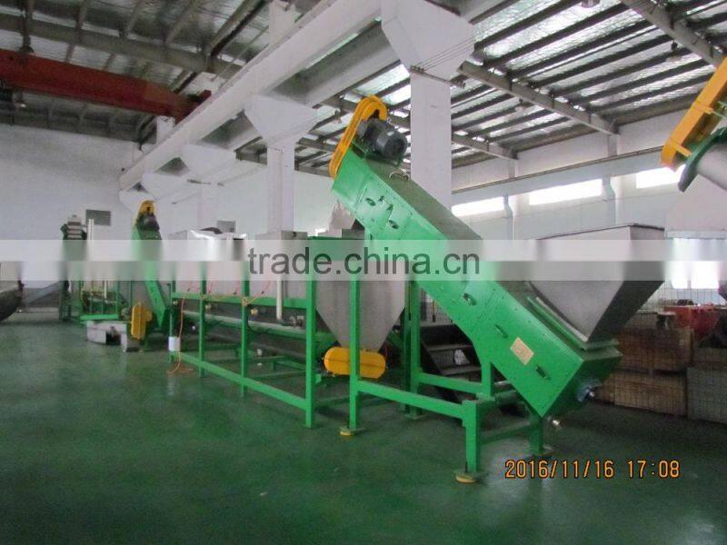 Recycling process: Belt conveyor - Plastic crusher - Friction dewater - High speed friction washer - Floating washing tank - Screw discharger - High speed friction washer - Floating washing tank -Screw discharger - High speed dewater machine - Air conveying system - Hopper. (According to impurities different, configuration is different)