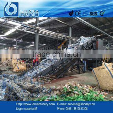 PET flakes recycling machine process: Chain conveyor-Debaler-Double screws loader- Prewasher- Double screws loader- Sorting platform- Crusher- Ccrew discharger- High speed horizontal dewater- hot washer boiler- High speed friction washer- PET cold water boiler(or here can use PET washing tank)- Screw loader -High speed horizontal dewater- Zigzag separator -Pacjing silo. PET bottle washing line capacity can be 500-5000kg/h.