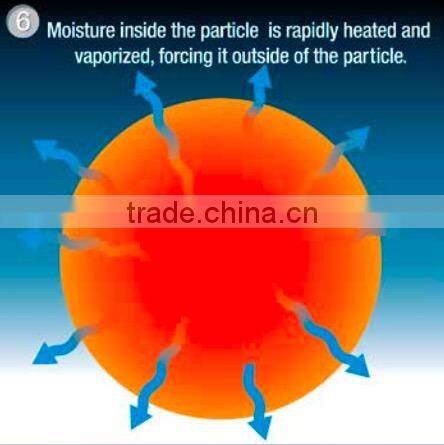 Moisture inside the particle is rapidly heated and vaporized, forcing it outside of the particle.
