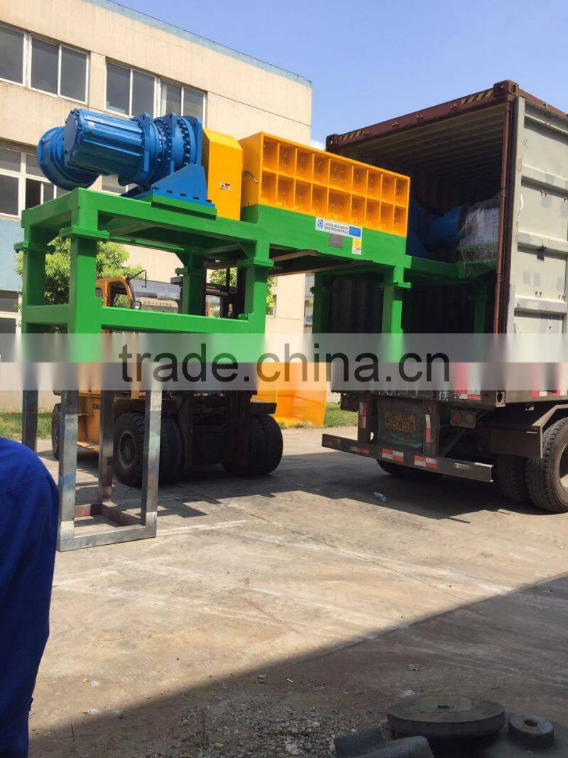 Twin shaft shredder is specially designed for crushing packed garbage films, agriculture films, Jumbo bags, woven bags, BOPP films, wrap films and so on. It is PLC control, with function of start, stop, inversion, overload automatic reverse and functional recovery, overload automactic return. This Twin shaft shredder with a low speed high torque, low noise characteristics.