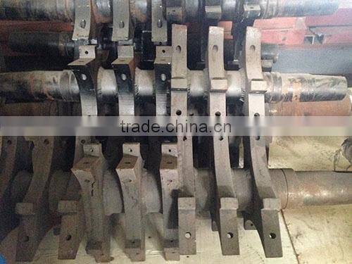 Working principle: Shredding machine completes the whole material broken by rotate blades of the axis and fixed blades on the equipment cut each other, as well rely on inertial impact. During crusher working, motor drive spindle at high speed, the material fed into the crusher evenly and broken by blade impact and shear tear. Crushed material flow down with water. When the size meet the screen requirement, they will come out of the machine.