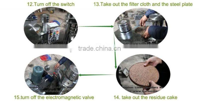 Two:Put the steel plate and filter cloth,cover the lid,Start pressing the material.