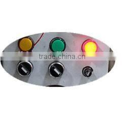 The right red light is power light, the middle green light is hydraulic pressing light,the left yellow light is light of temperature controller.