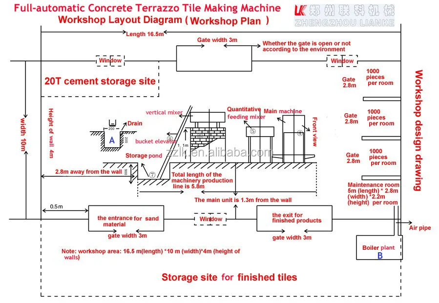 The workshop layout diagram of the MYW-8 full-automatic concrete tile making machine is as follows: