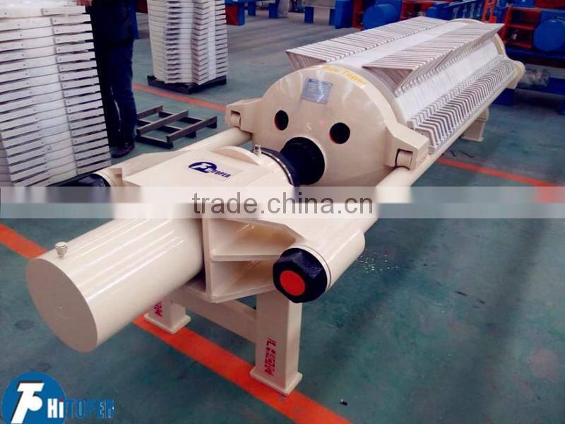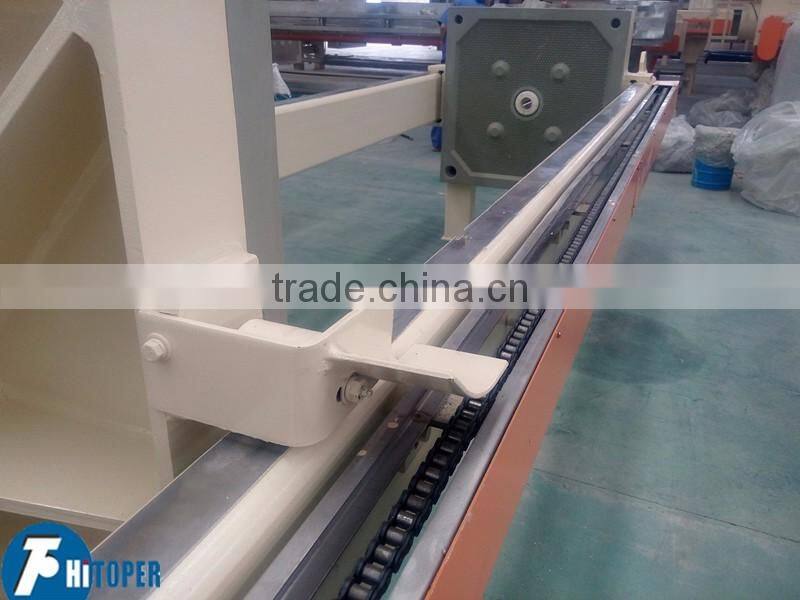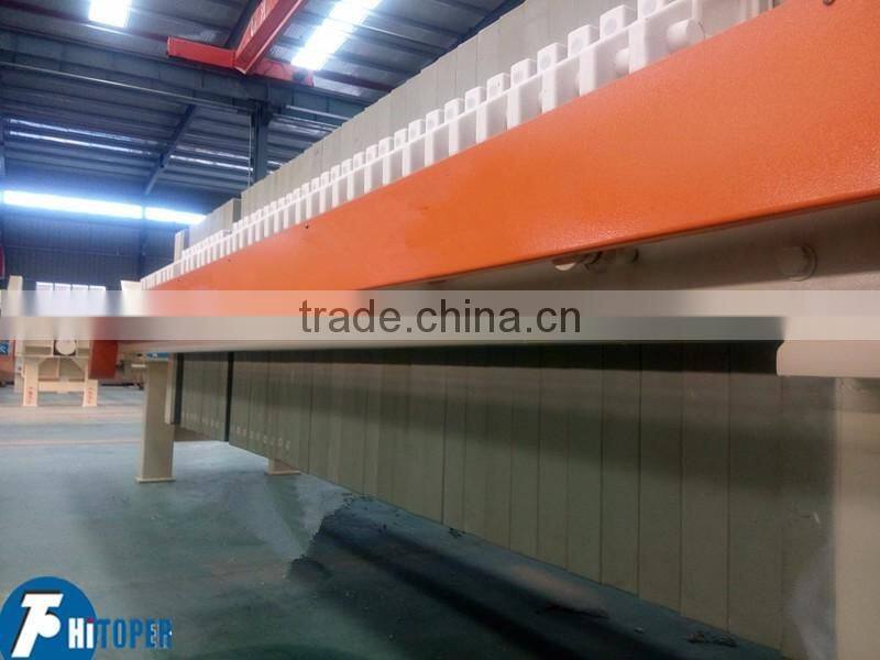 Papermaking factory mixed sludge dewatering filter press of membrane plate type automatically operation whose filtration chamber is composed by membrane plate and the chamber plate ,with the help of the feeding pump,the solid and liquid are separated by the filter medium(filter cloth) .After the filter cake is formed,and then air or liquid goes into membrane plate.The second squeezing happens by membrane late bulk and lower moisure content.