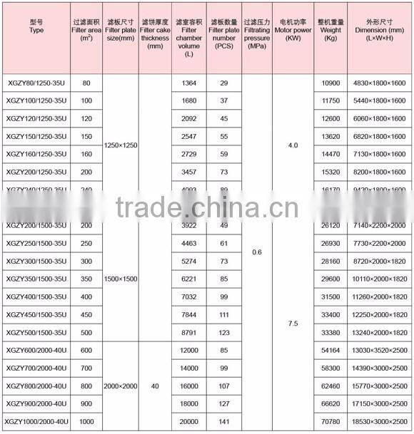 developing. Filter areas of filter press widely ranges from 1 m2 to 500 m2, you can always choose a right type.