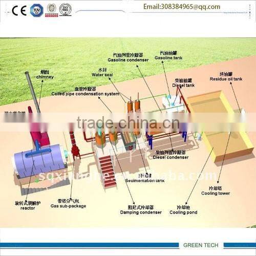 2. distillation. heating fuel oil/pyrolysis oil, the oil will be separated to diesel and gasoline in gas shape at different temperature, then diesel or gasoline cooling down to liquid type.