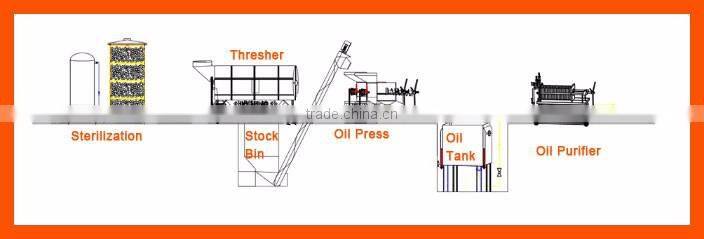 Fruit thresher----palm fruit boiler---palm oil press---oil filter---oil storage---oil packing