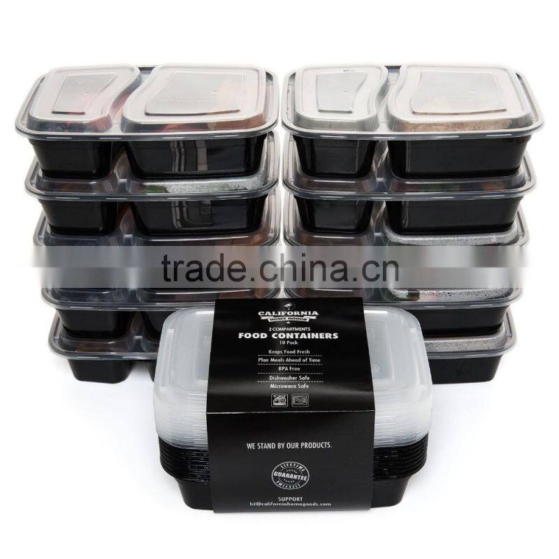 2 Compartment Plastic Food Container,Bento Lunch Box With Dividers,microwave Safe Food Container
