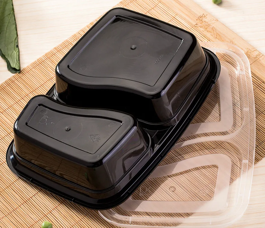 Home > Products > Take Away Series > Yoyo Check Now 2 Compartment 1000ml Plastic Black Write Clear Food Storage Container
