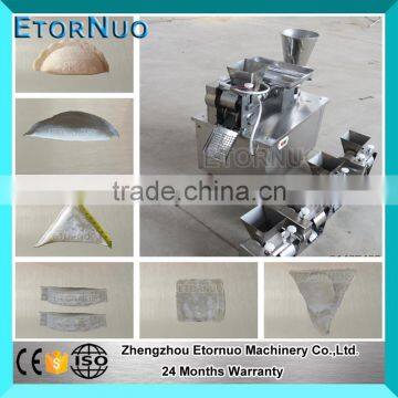 The stainless steel chinese small dumpling machine uses double control and two-way synchronous quantitative feeding principle,which don't need dough roller, just put the dough and stuffing into the hoppers, then it can produce the samosa automatically.