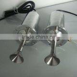 In Ultrasonic Atomize technology of high powers, all powers are generated from the vertical transducer. The complete machine consists of ultrasonic transducer, booster, horn (sonotrode), and special generator. Its characteristics are lower working frequency, large power; high fog efficiency, single transducer fog volume can be large or small, one unit max. fog volume can over 100L/H; for medium unlimited, it can spray sewage, chemical liquid and oil mucus. The fog volume can be adjusted at will; it is mainly suitable application in industry field.